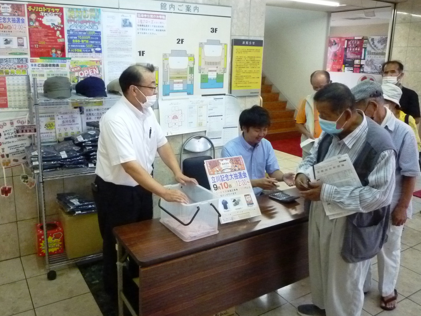 立川記念最終日の9月10日(日)、立川競輪グッズ等が当たる抽選会を開催しました。抽選開始前から長蛇の列となり約30分ほどで抽選会は終了となりました。ありがとうございました。9月はまだまだ盛りだくさんのファンサービスを実施する予定です。お楽しみに。